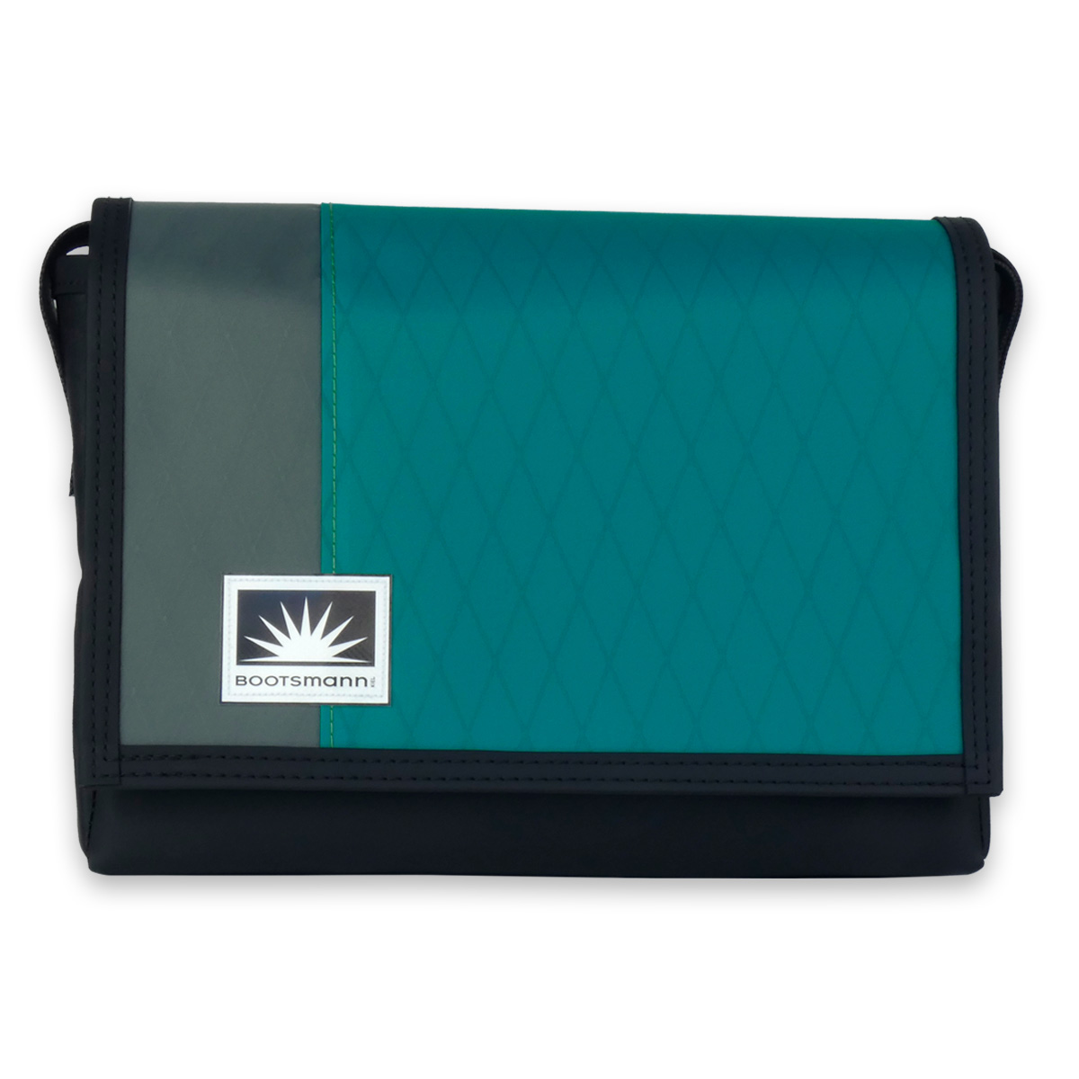 Gefertigt wird sie aus einer Kombination von Masttaschentuch und X-Pac VX21 – beides hochwertige Segeltuchmaterialien von Dimension-Polyant. Diese Stoffe sind extrem robust, leicht, wetterfest und langlebig. Damit ist die Tasche nicht nur stylisch, sondern auch perfekt für Wind, Wetter und tägliche Beanspruchung geeignet.