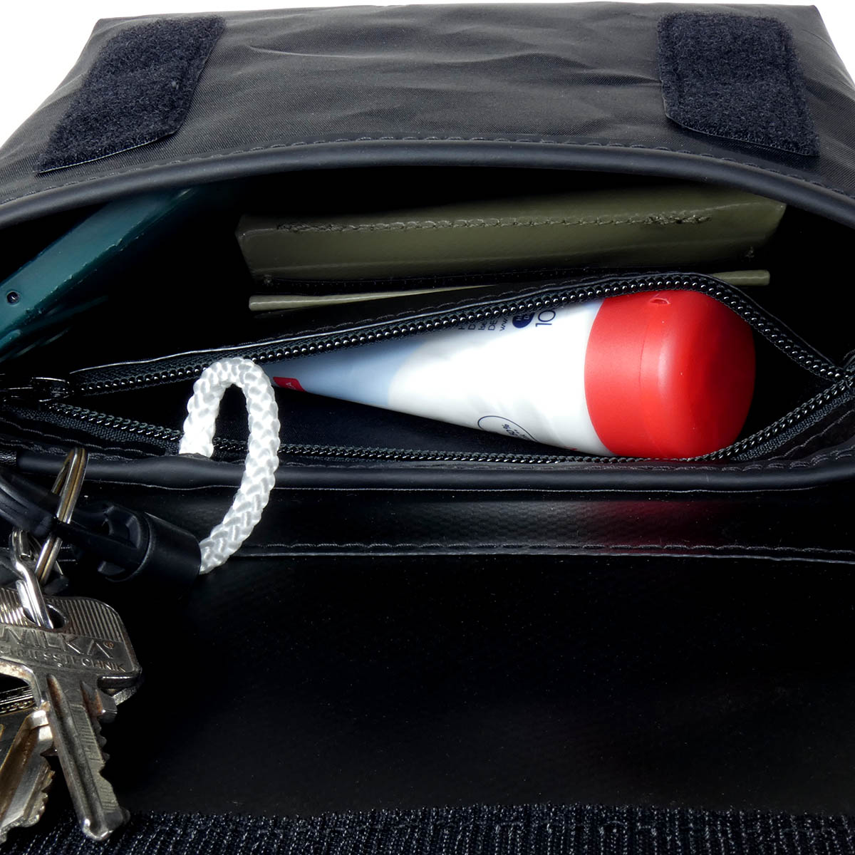 Unsere kleinste Umhängetasche hat immer noch genug Platz für das Allerwichtigste: Schlüssel, Handy, und deine Geldbörse passen gut rein. Der Schultergurt ist auf eine Maximallänge von 150 cm verstellbar. Wir fertigen die XS aus neuer LKW-Plane in unserer Kieler Manufaktur am Tiessenkai in liebevoller Handarbeit an. Freut euch auf ein robustes, wetterfestes und äußerst langlebiges Produkt.
