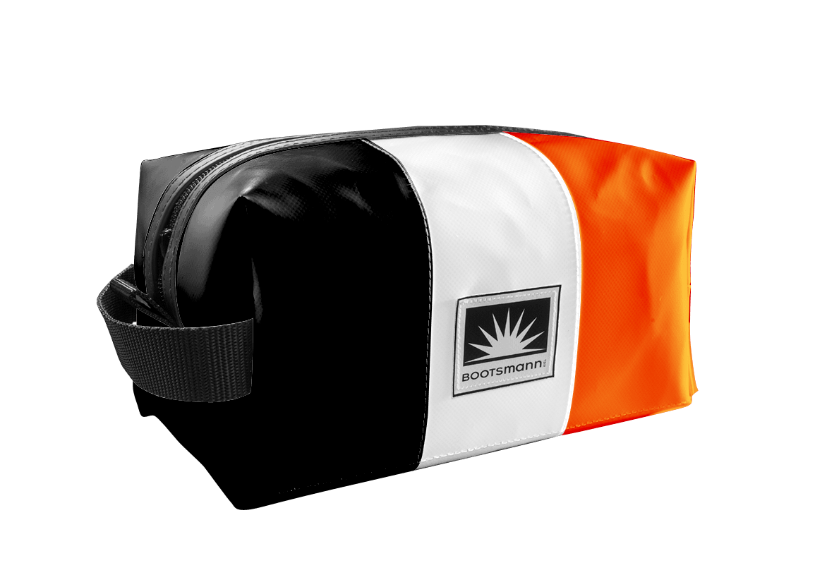 Wir fertigen die Kulturtaschen aus LKW – Plane in unserer Kieler Manufaktur in liebevoller Handarbeit für euch. Freut euch auf eine robuste, wetterfeste und äußerst langlebige Tasche.