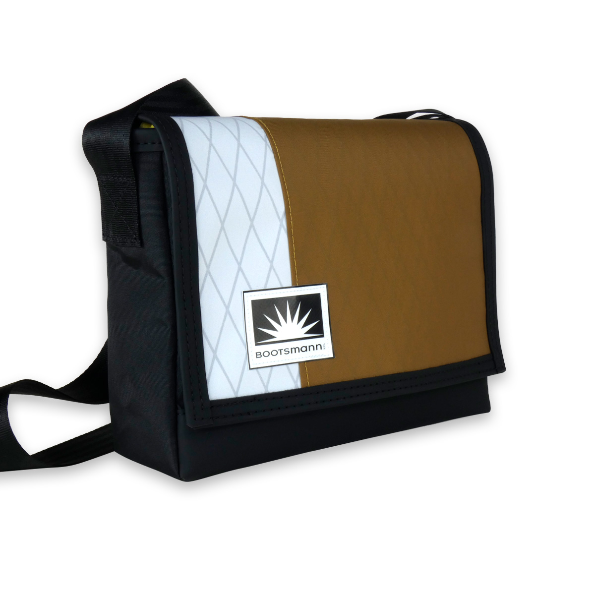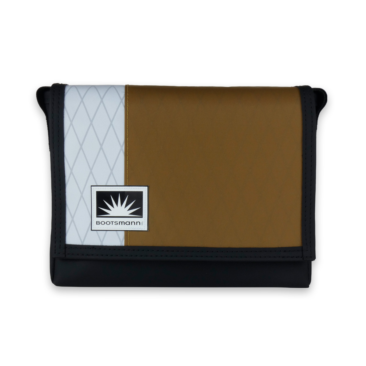 Unsere S-quer ist besonders beliebt: Sie bietet ausreichend Platz für deine wichtigen Dinge und sieht dabei noch strahlend frisch aus. Neben dem geräumigen Hauptfach verfügt die Tasche über eine Innentasche mit YKK-Reißverschluss, auf der zusätzlich eine praktische Smartphonetasche sitzt. Für deinen Schlüsselbund ist ebenfalls gesorgt. Der Taschenkörper besteht aus robustem, widerstandsfähigem Masttaschentuch der Firma Dimension-Polyant, während der Taschendeckel aus X-Pac VX21 gefertigt wird. Wir fertigen unsere Umhängetaschen in liebevoller Handarbeit in unserer Manufaktur am Tiessenkai. Freut euch auf ein langlebiges, wetterfestes und besonders strapazierfähiges Produkt.