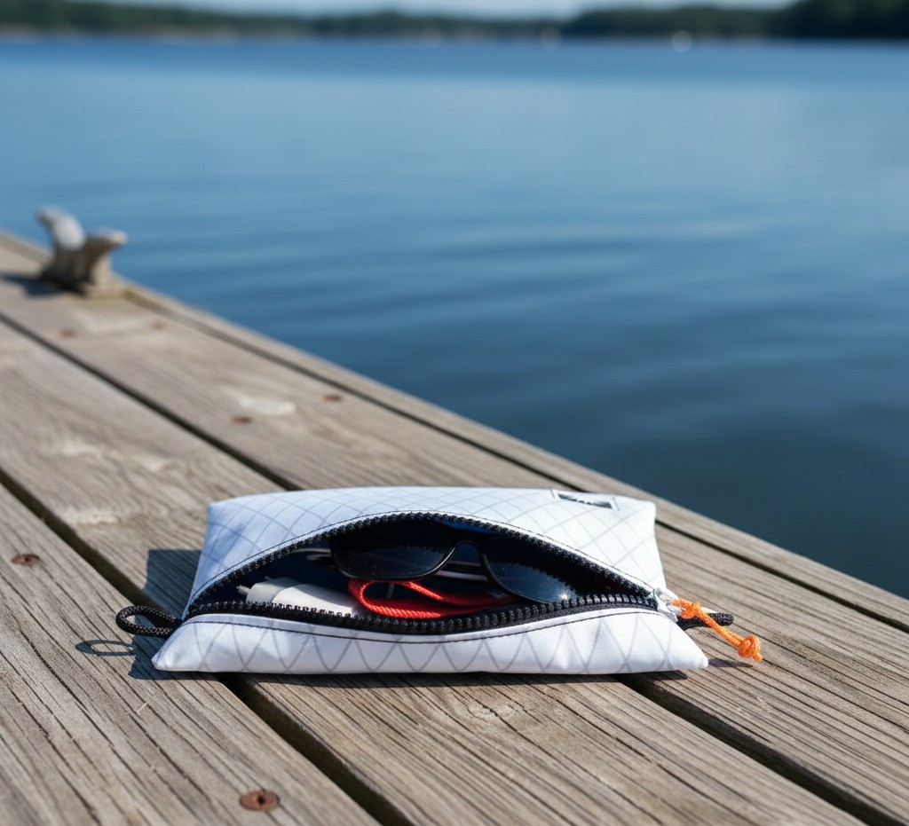 Gefertigt aus hochwertigem X-Pac Segeltuch, ist der Beutel extrem leicht, wasserdicht und gleichzeitig stabil. Der YKK-Reißverschluss garantiert langlebige Funktionalität und sicheren Verschluss – egal, wohin du den Beutel mitnimmst.
