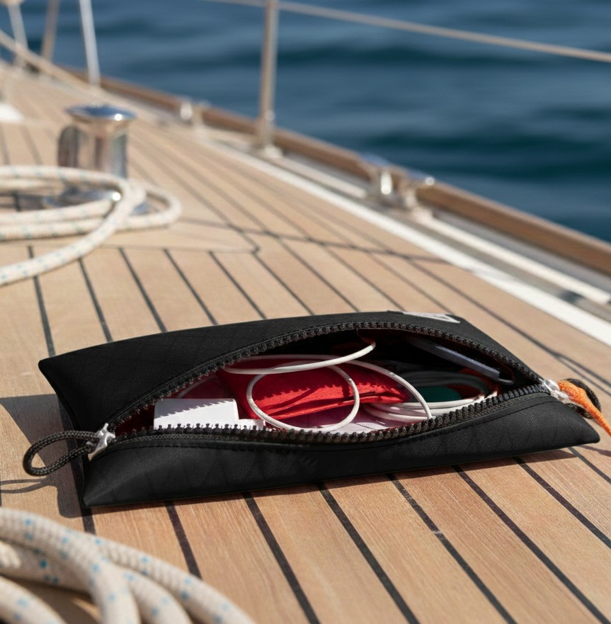 Ideal für unterwegs, im Rucksack oder als praktische Ordnungshilfe im Büro – mit dem Bootsmann Beutel aus X-Pac hast du deine kleinen Dinge immer griffbereit und stilvoll verstaut.