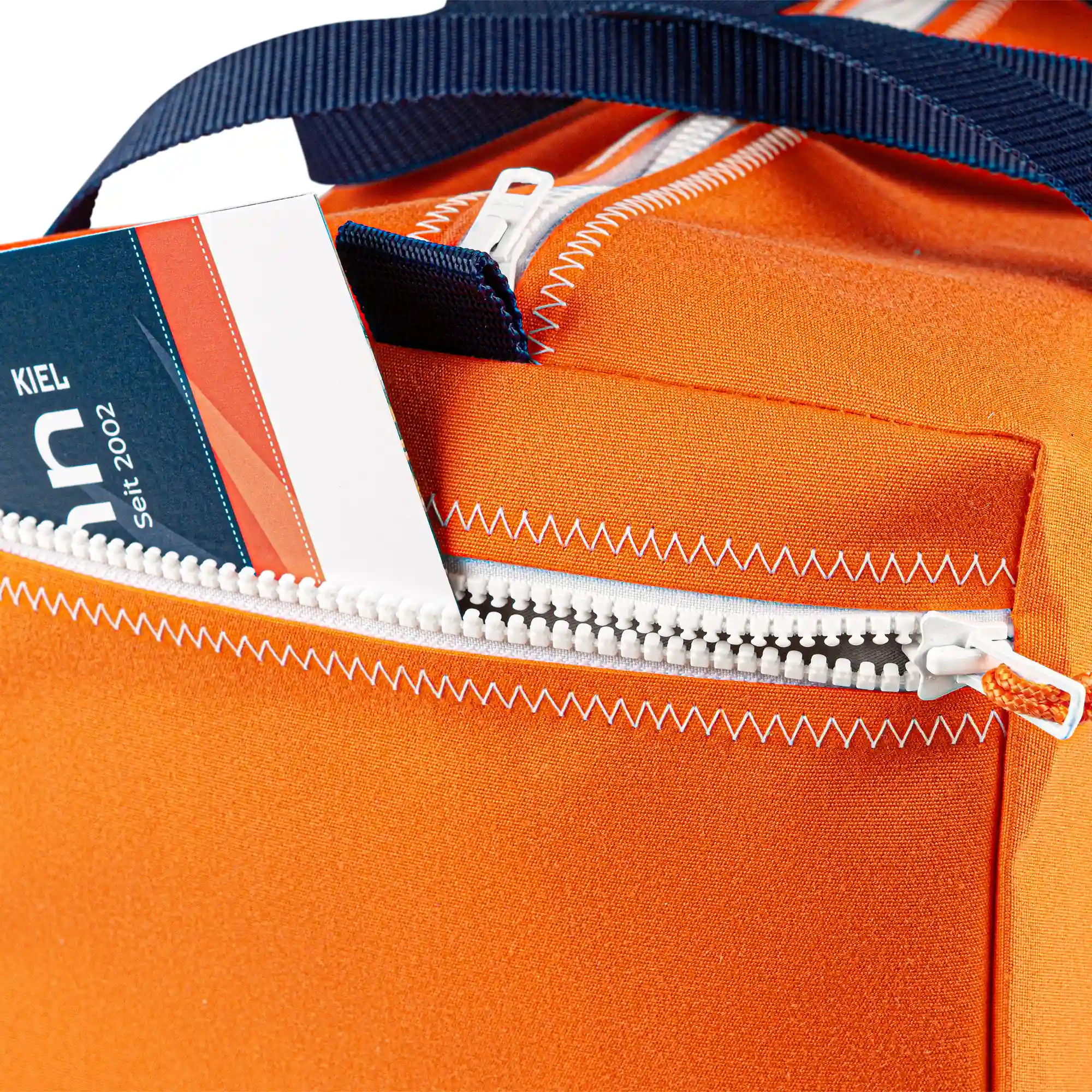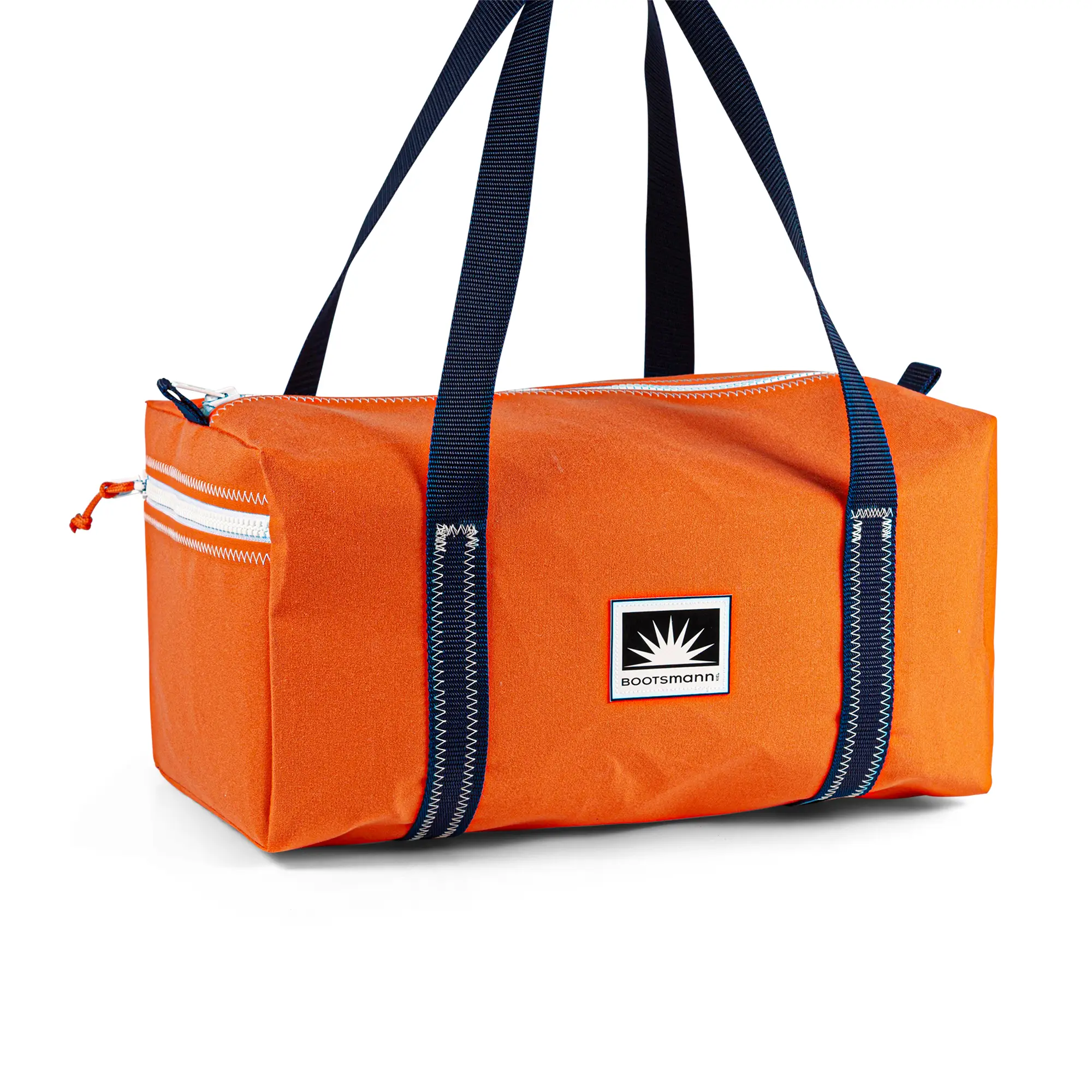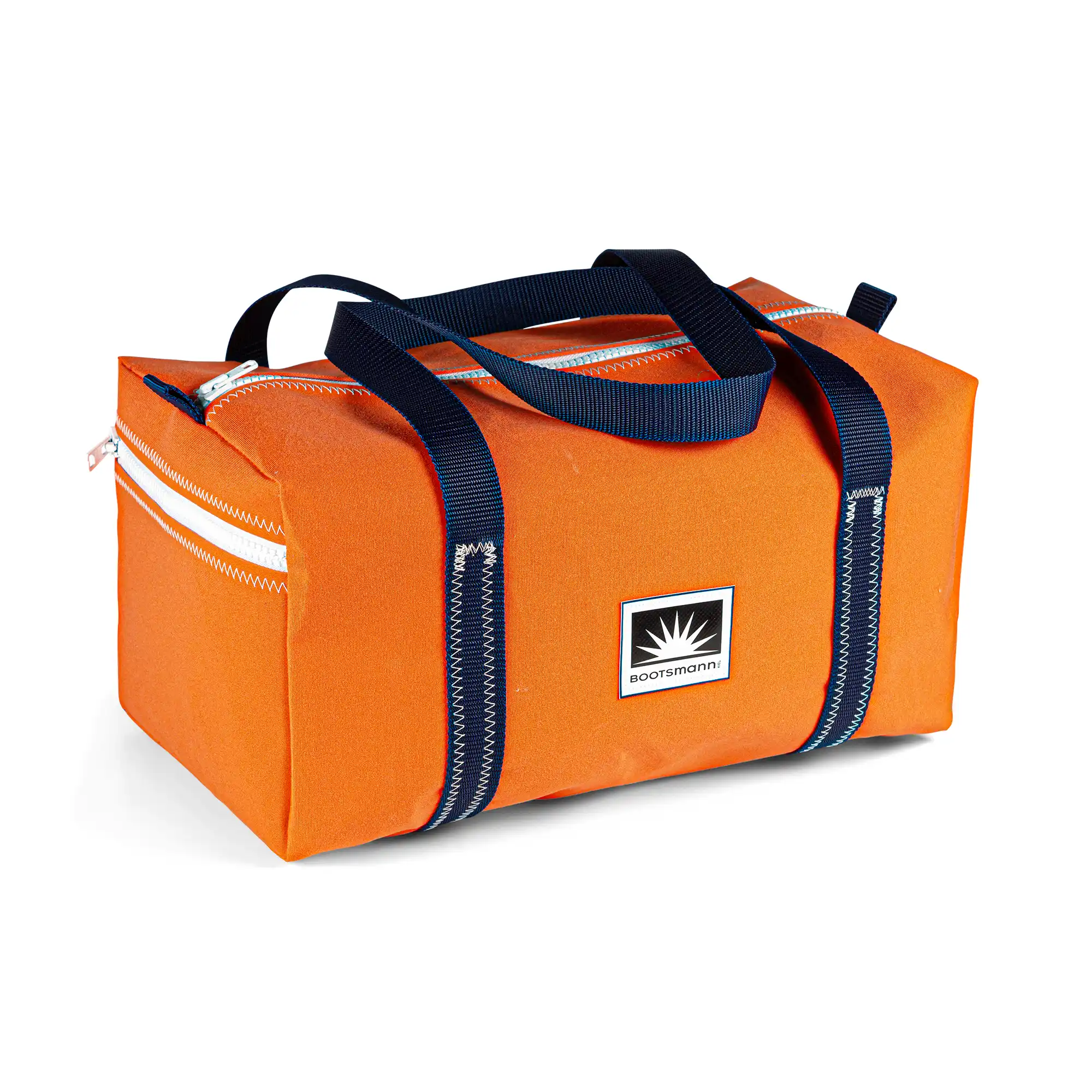Unsere Sporttasche S wird aus dem robusten Persenningstoff Masacril gefertigt. Sie ist wetterfest, strapazierfähig und besonders langlebig. Die Tasche verfügt über eine praktische Reißverschluss-Außentasche und eine Innentasche, sodass alles sicher verstaut ist.