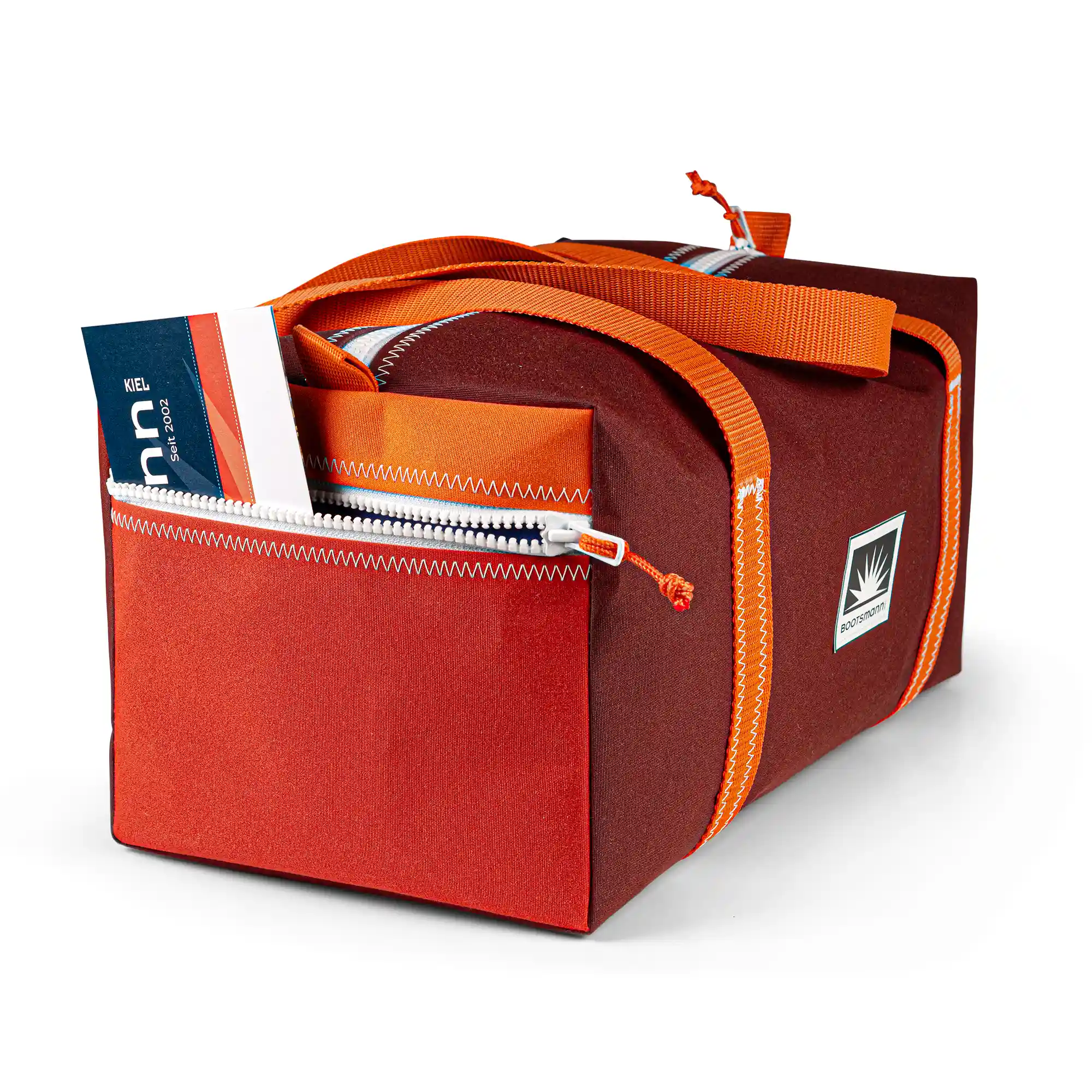 Unsere Sporttasche S wird aus robustem Canvas-Tuch gefertigt. Sie ist wetterfest und besonders langlebig. Die Tasche verfügt über eine praktische Reißverschluss-Außentasche und eine Innentasche, sodass alles sicher verstaut ist.