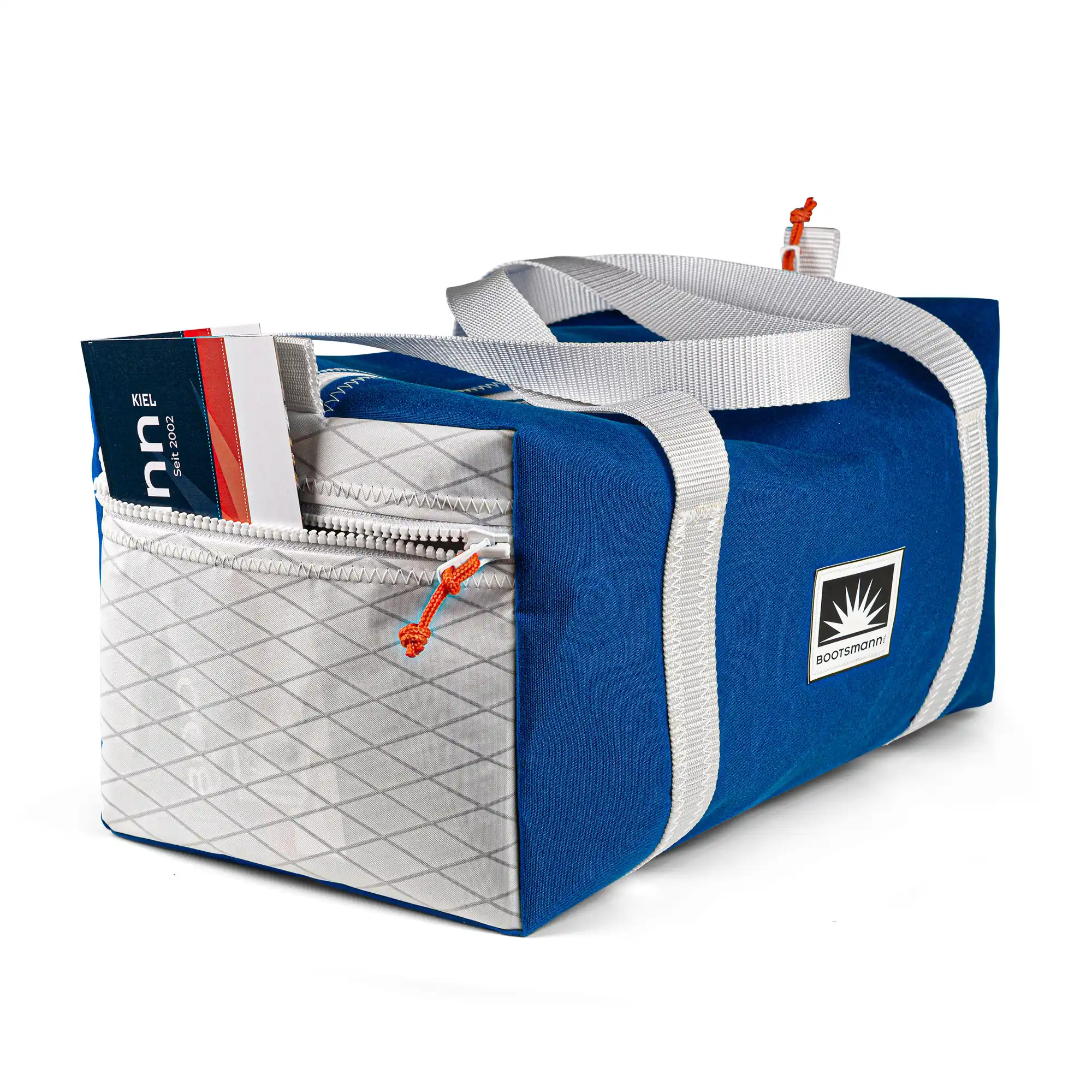 Unsere Sporttasche S wird aus dem robusten Persenningstoff Masacril gefertigt. Sie ist wetterfest, strapazierfähig und besonders langlebig. Die Tasche verfügt über eine praktische Reißverschluss-Außentasche und eine Innentasche, sodass alles sicher verstaut ist.