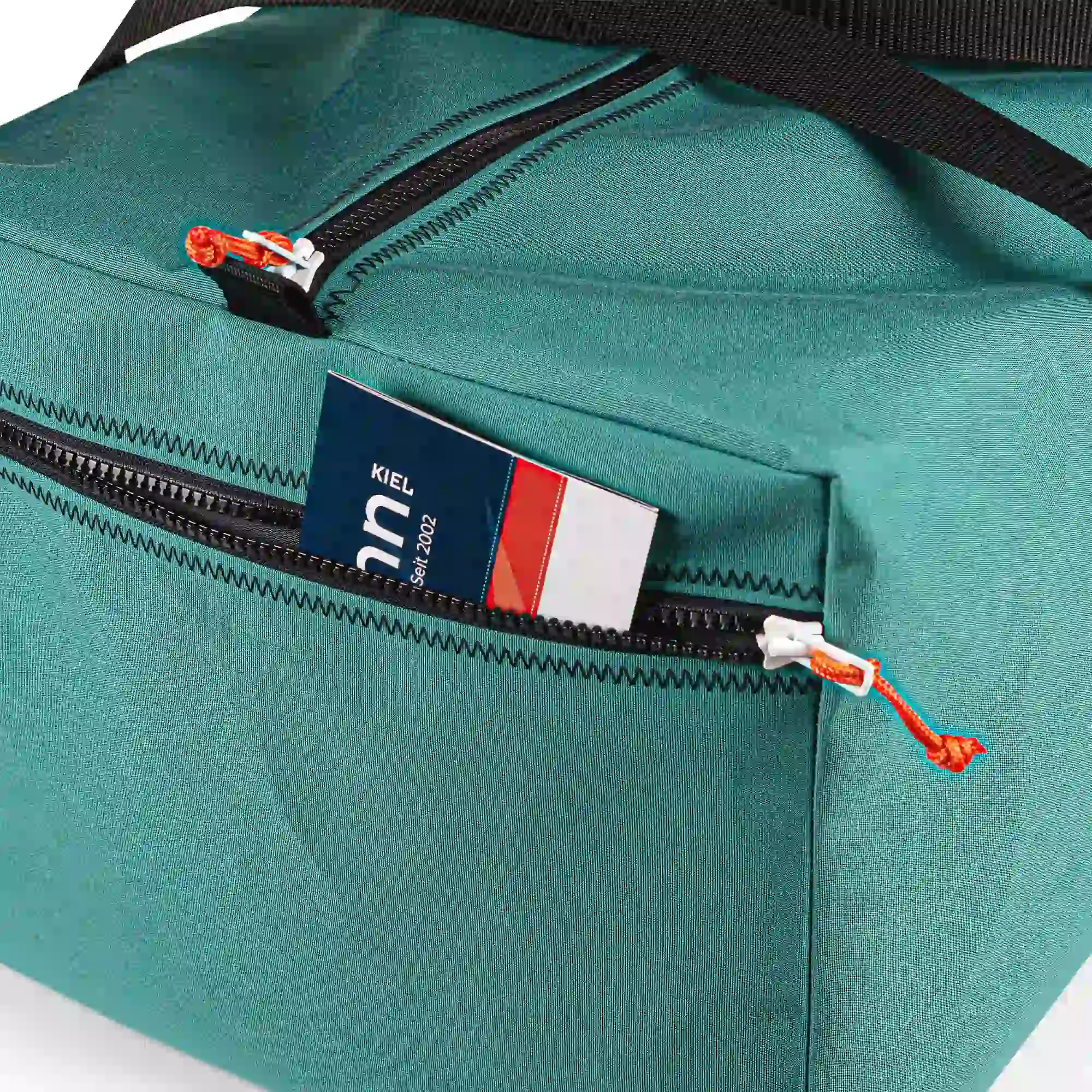Unsere Sporttasche XL wird aus robustem Persenningstoff Masacril gefertigt. Sie ist wetterfest, strapazierfähig und besonders langlebig. Die Tasche verfügt über eine praktische Reißverschluss-Außentasche und eine Innentasche, sodass alles sicher und ordentlich verstaut ist.